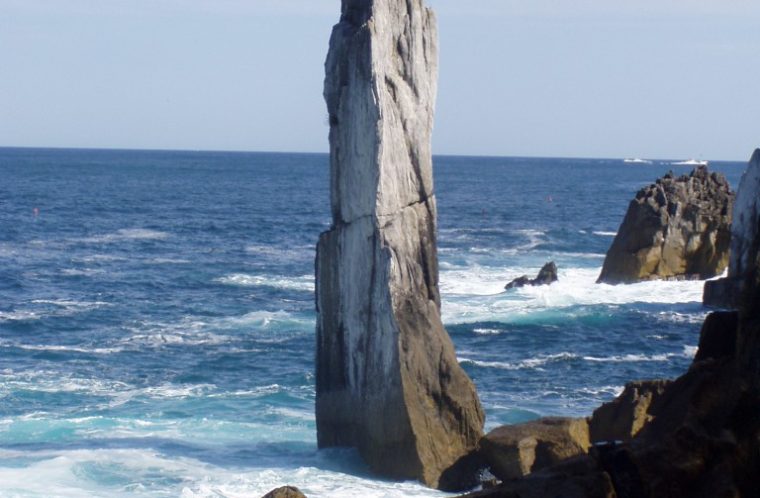 中でも折石は、三陸復興国立公園を代表する景観の一つ。海中から空に向かってそびえ立つ高さ16m幅3mの大理石の石柱は、明治29年の大津波の際に先端が2m程折れてしまったことから、名付けられたと言われています。ちなみに、津波で折れてしまう以前は「天柱岩」と呼ばれていました。
