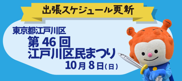 日時:2023年10月8日(日)9:00〜16:00 場所:都立篠崎公園(江戸川区上篠崎1丁目25番1号) 内容:世代を超えた交流と地域コミュニティの活性化を目的に、昭和53年から始まった江戸川区最大規模のイベントにホヤぼーやも登場します! 登場時間はイベント開催時間内随時を予定しておりますので、あらかじめご了承ください。 イベント公式HP
