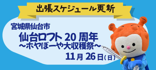 内容:仙台ロフトさんの20周年のお祝いにホヤぼーやも駆けつけます★
