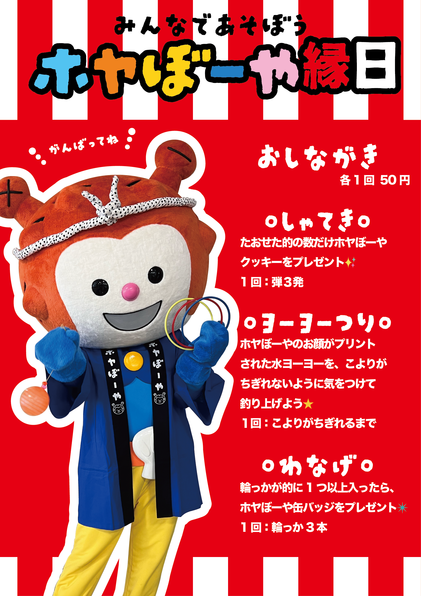 ホヤぼーやも「ホヤぼーや縁日」ブースを中心に会場に随時登場しますので、グリーティングと合わせてお楽しみください★
