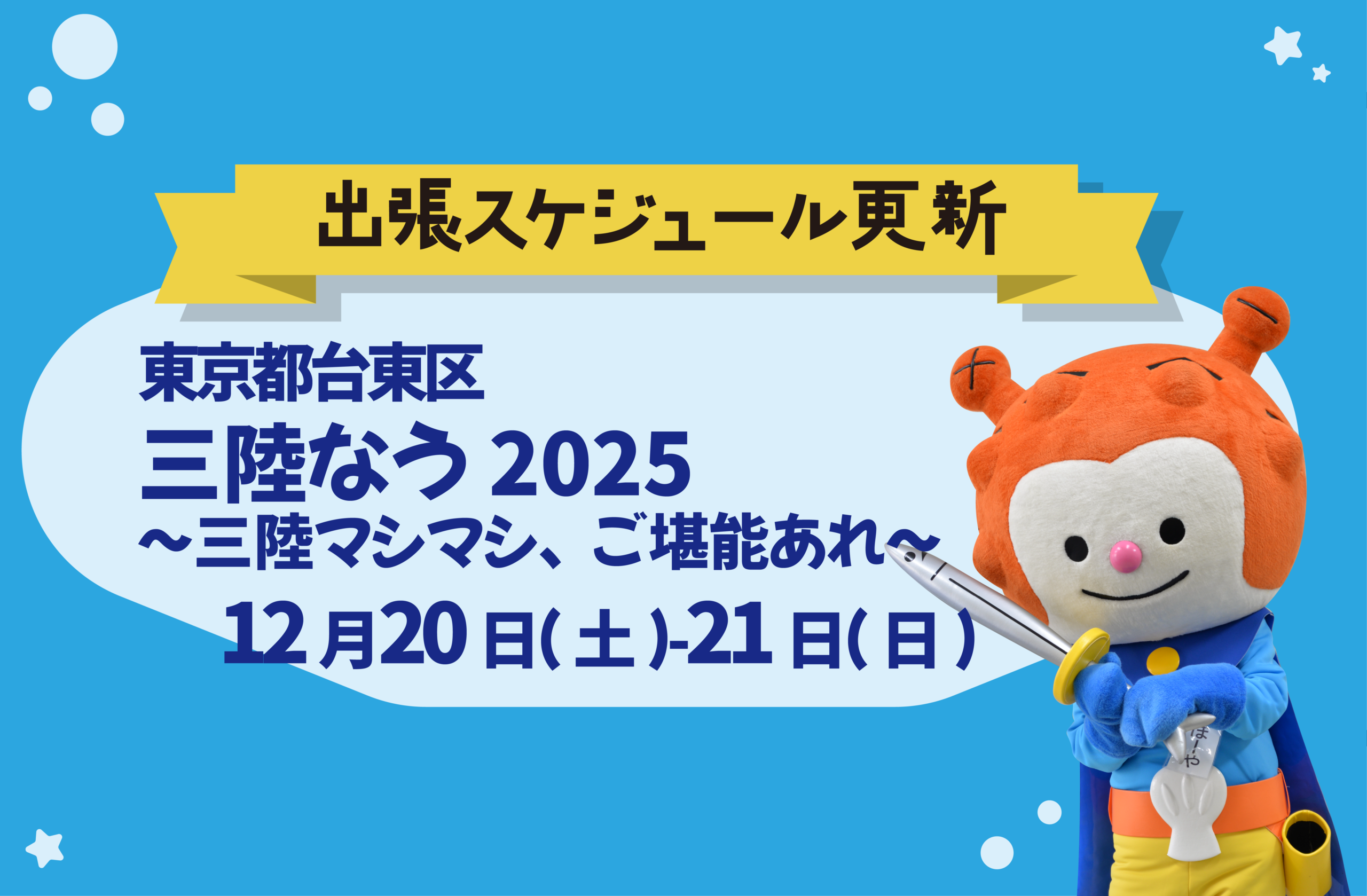 内容:2013年から開催されている三陸の人や食の魅力や防災・減災に対する意識を高めるイベント「三陸なう」に本年もホヤぼーやがお邪魔します!