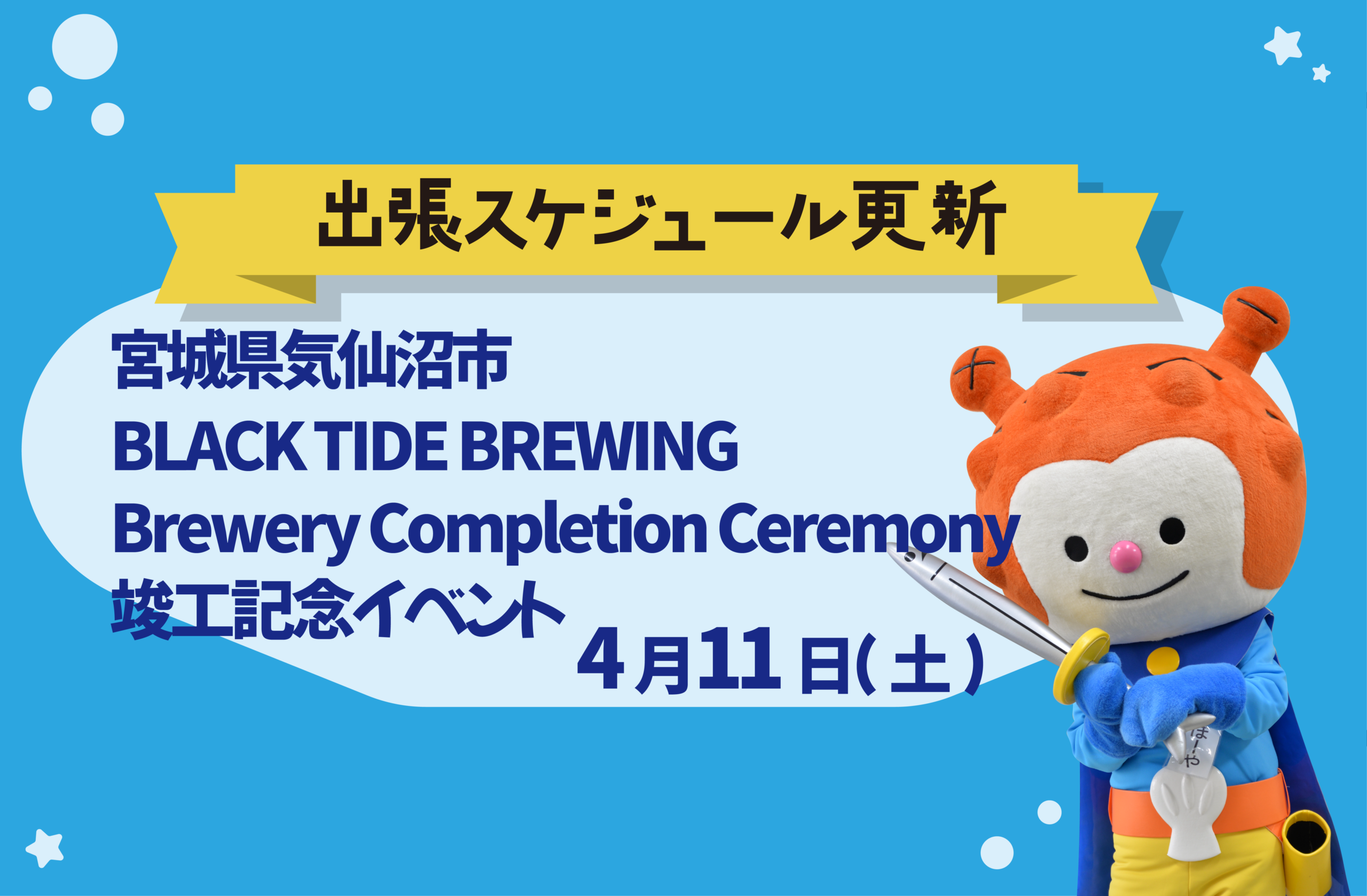 内容:ホヤぼーやパートナーシップ協定を結んでいる気仙沼市内のクラフトビール企業「BLACK TIDE BREWING」の第二工場竣工記念イベントにホヤぼーやもお祝いに駆けつけます!