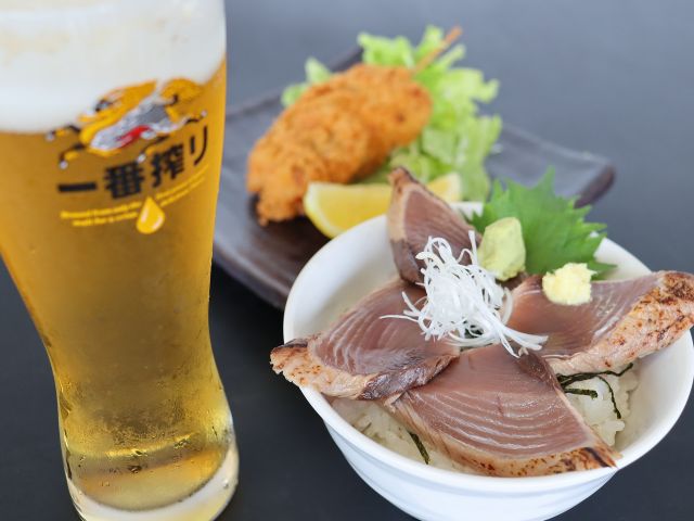 ミニ丼(かつおタタキ)・シャークソーセージ串カツのセット※テイクアウト不可