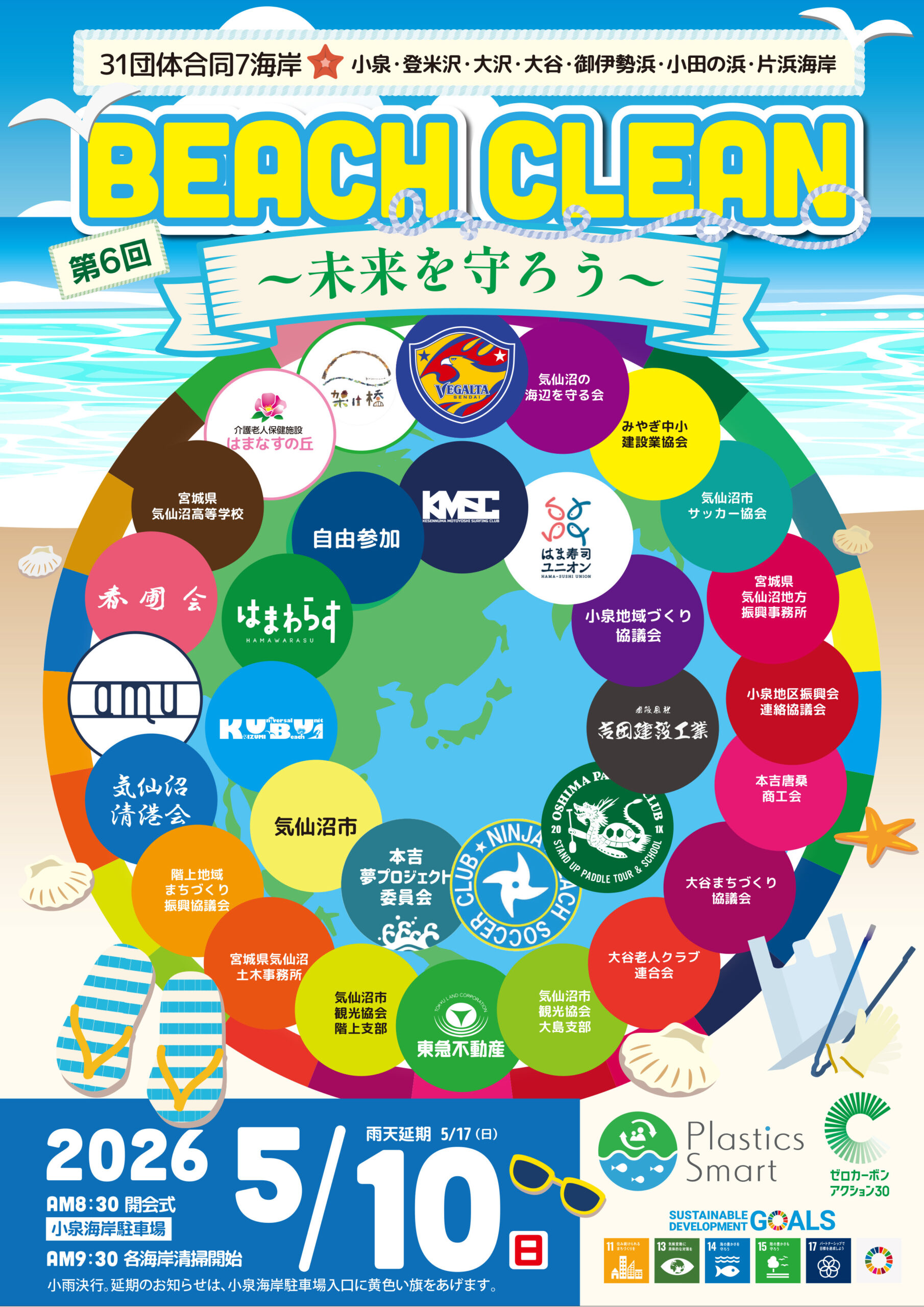 - 2026年5月10日(日) 9:30 各海岸清掃開始