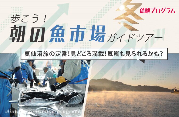 看板商品は気仙沼市魚市場を舞台としたガイドツアー「歩こう朝の魚市場」です。地元の人達には当たり前な風景や、水産業のお仕事には、実は驚きのポイントがいっぱいなんですよ。たとえば、遠洋マグロ延縄漁やさんま棒受け網漁など、どうやって魚を獲ってきているか、意外に知られていないことが沢山あります。