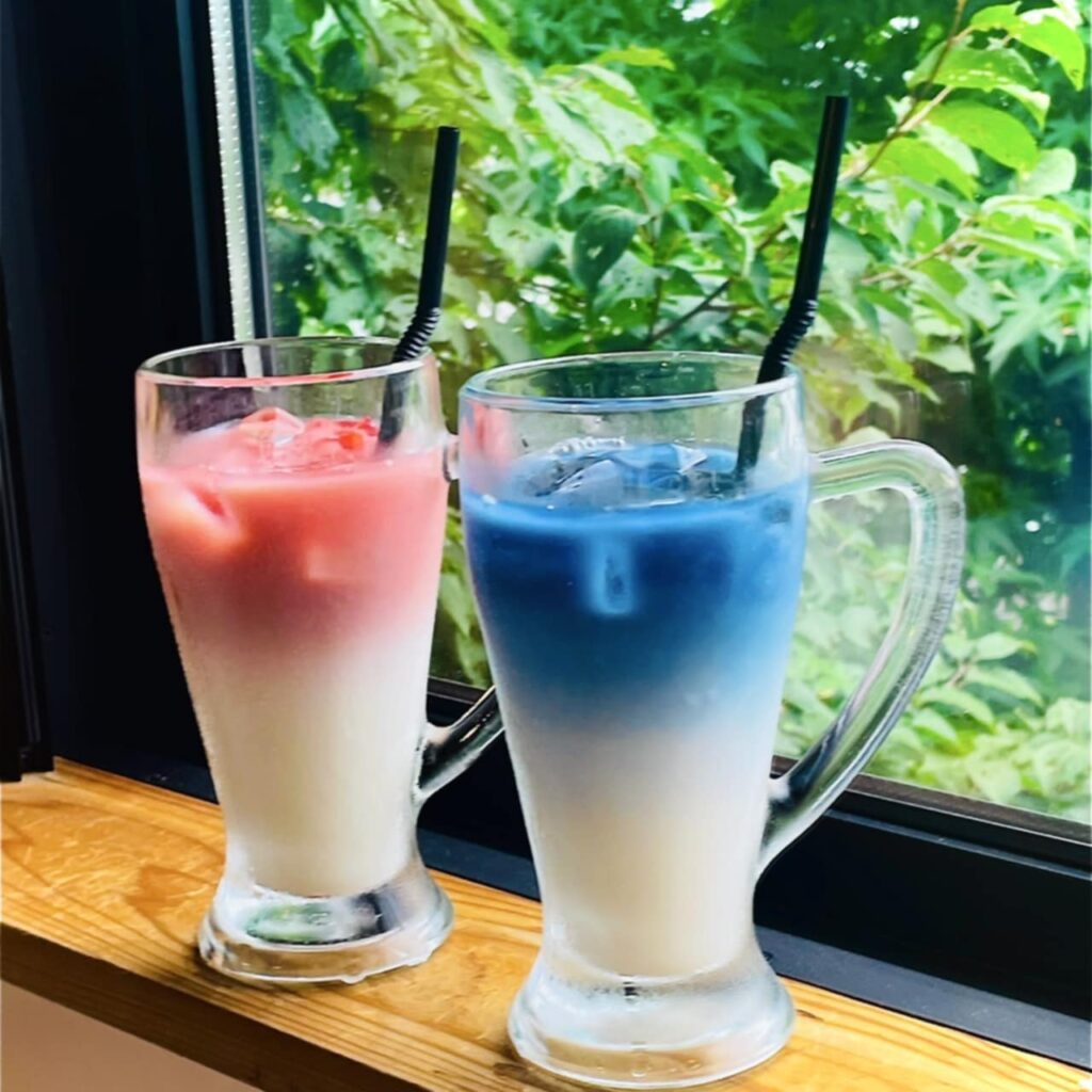 タイ王国のオーガニックティーをタイ式のアイスミルクティーに。ローズチャナタイティーと、ブルームーンタイティーの2種類。タイ王国の伝統あるオーガニックティー「ラミンティー」本場タイのドリンク屋台や食堂で味わうタイ式アイスミルクティー「チェーイエン」の味わいそのままに。濃厚で深い風味のタイのオーガニックティーとバニラのほんのり甘くスモーキーな香りと味わいがやみつきになるドリンクです。鮮やかな赤と青のコントラストは見た目も華やか。ほんのり甘くふわっと香る紅茶の香りがします。