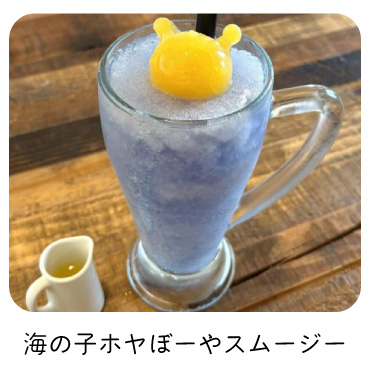 気仙沼の海を泳ぐホヤぼーやをイメージした夏にぴったりのひんやりスムージー。シロップを入れると色が変わります。