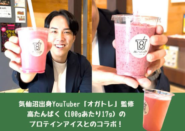 気仙沼のYoutuberで、人気ストレッチチャンネルを発信しているオガトレさんとコラボの商品「ハートビーツスムージー」。高タンパクのプロテインアイスと気仙沼産のビーツを掛け合わせたスムージー。アイスには岩井崎の塩、さめのコラーゲンも含まれており、暑さ対策の塩分補給、コラーゲンの生成に必要なビタミンCも同時に摂取できる相乗効果が期待できます!オガトレさんのストレッチと一緒に楽しんでみては?