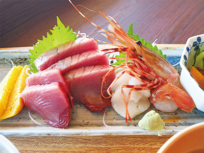気仙沼港で水揚げされたかつおをメインにした刺身定食です。