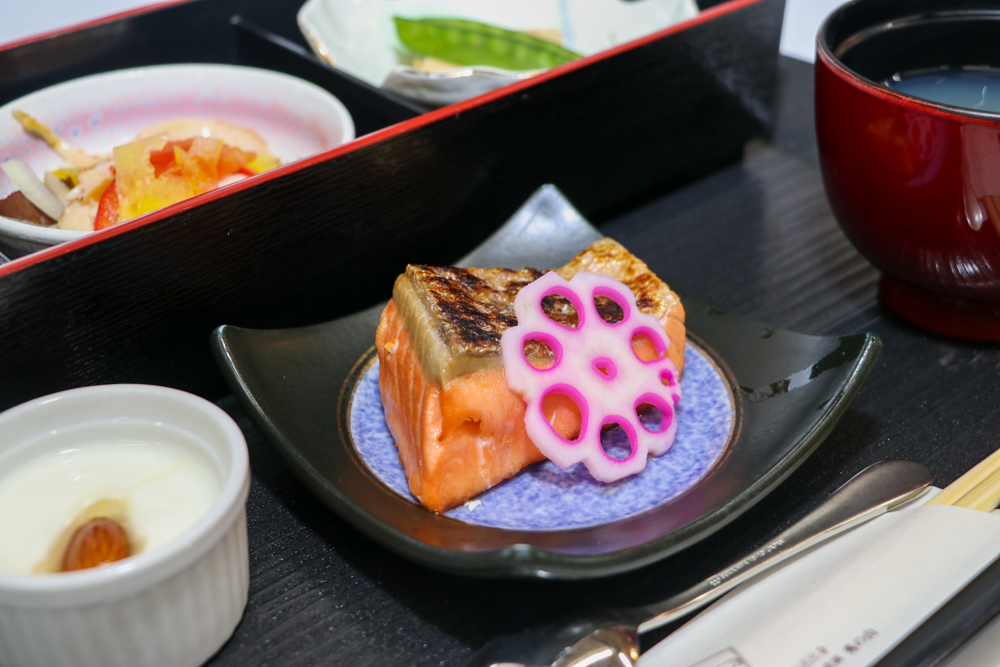 自分で削るかつお節と、炭火で焼き上げた鮭がついた和定食です。