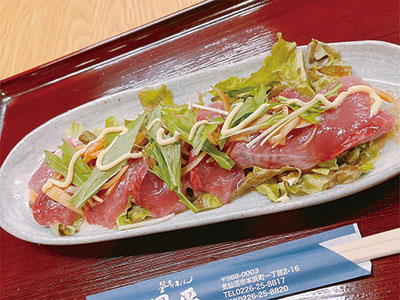 気仙沼の新鮮なかつおをタタキにして、青じそ風味のドレッシングでお召し上がりください。