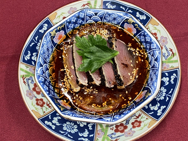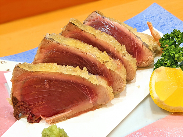 かつおのたたきとごまの風味の相性をお楽しみください。