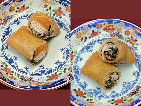 中華の定番、パリパリの春巻きをかつおを入れて2種類ご用意。