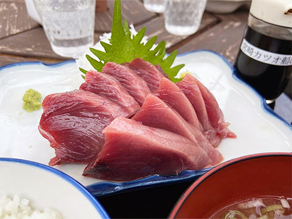 気仙沼港で水揚げされたカツオをメインにした刺身定食です。
