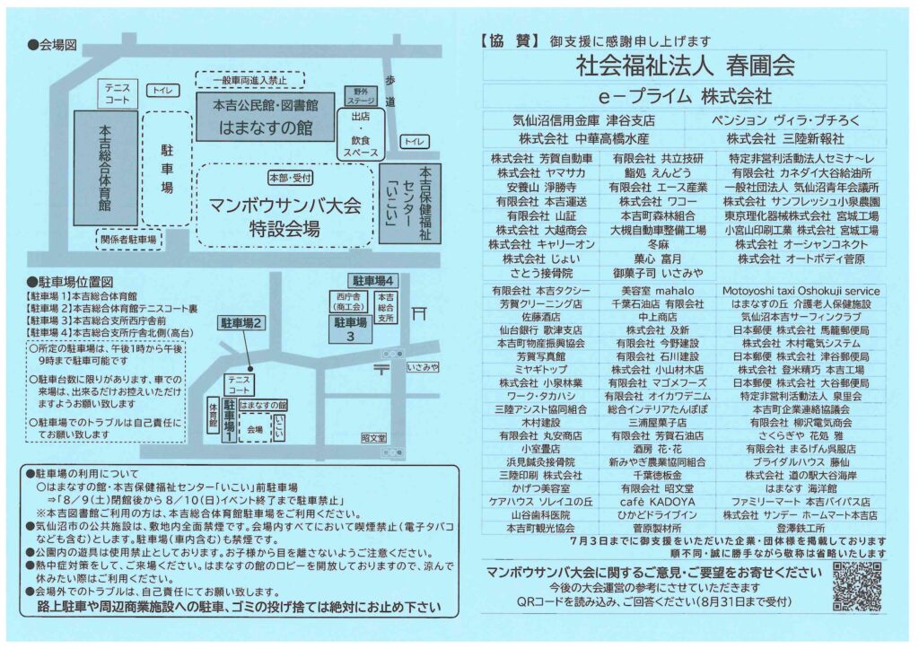 会場は本吉公民館前特設会場。マンボウサンバ以外にも様々な催しを用意しています。