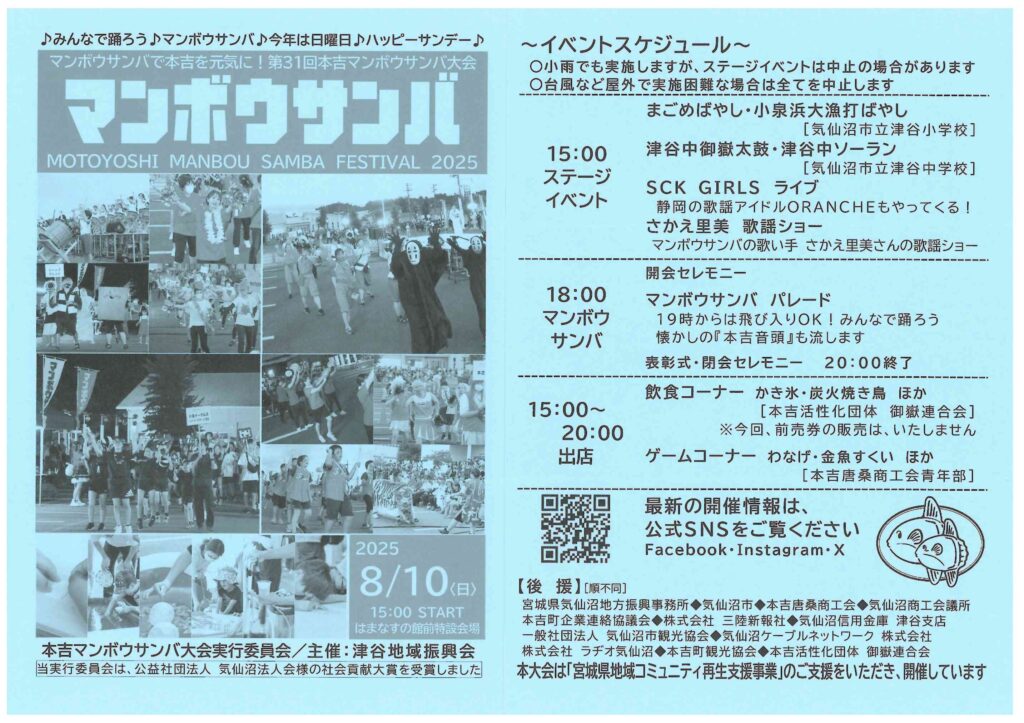 31回目となる本吉の夏の風物詩「本吉マンボウサンバ大会」が今年も8月10日(日)に開催されます。
