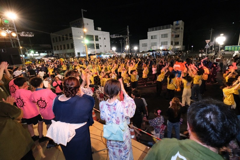 昨年で30回を数え、気仙沼市では知らない人がいないほど市民に愛されている「はまらいんや踊り」。市内の企業や学校、有志のサークルが港町の臨港道路に集まり、バンドの演奏に合わせて2時間踊り続けます。観客も思わず踊りだす、気仙沼で最も熱い夜!