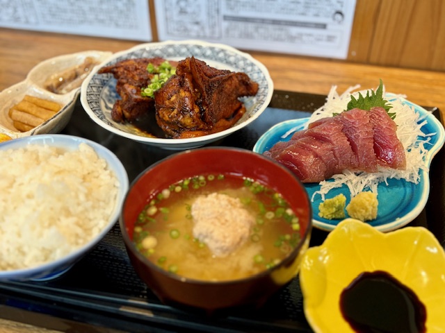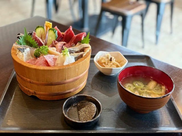 ほかにも漁師のまかない定食、メカジキハーモニカ定食やその日の漬け丼定食などがあります。カツオの漬け丼は漬け込んだカツオだけでも美味しいのですが、ご飯と一緒に食べると堪らないですね。そして、漬け丼の後は、お茶漬けにしてくれるので、二度楽しめます!