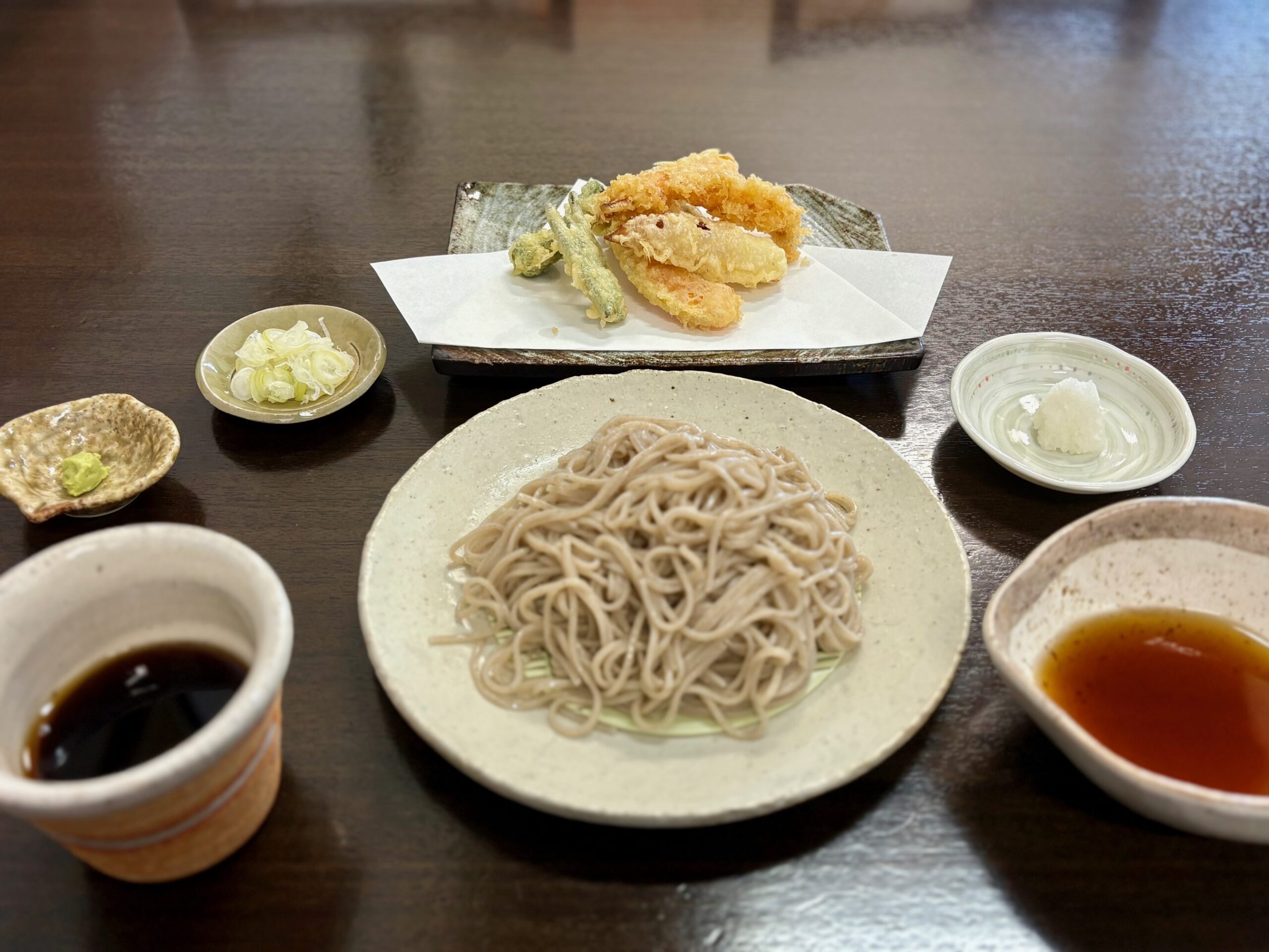 ランチには、おそばやうどん、豚丼や中華丼、とろろ飯セットなどのご飯ものがあります。天ざるそばは、風味豊かでのどごしのいい細麺のおそばはもちろんのこと、さっくりと揚がった天ぷらも美味しいんですよ!天つゆが別でついてくるので、そばつゆが脂っこくならないのもいいんですよね。次回はご飯ものも食べてみたいなと思いました。